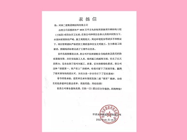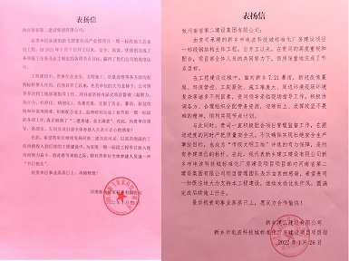 新乡建工建设有限公司和河南新飞智家科技有限公司向华体会(中国)发来表扬信