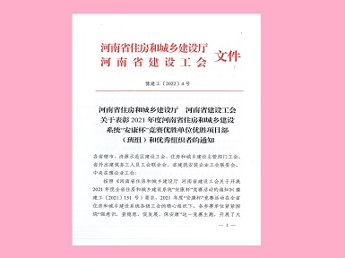 华体会(中国)焊工班组荣获“2021年度河南省住房和城乡建设系统‘安康杯’竞赛优胜班组”称号
