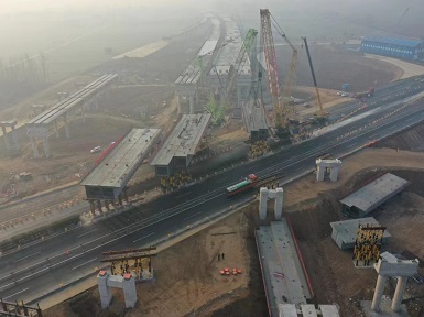 华体会(中国)方唐高速跨兰南高速钢箱梁项目顺利完成跨路施工吊装