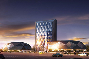 世界功夫中心工程分为训练中心和演播中心两个单体工程,总建筑面积为15475.85平方米,钢结构形式为空间桁架结构与单层壳体组合结构体系,钢结构量约1000吨。